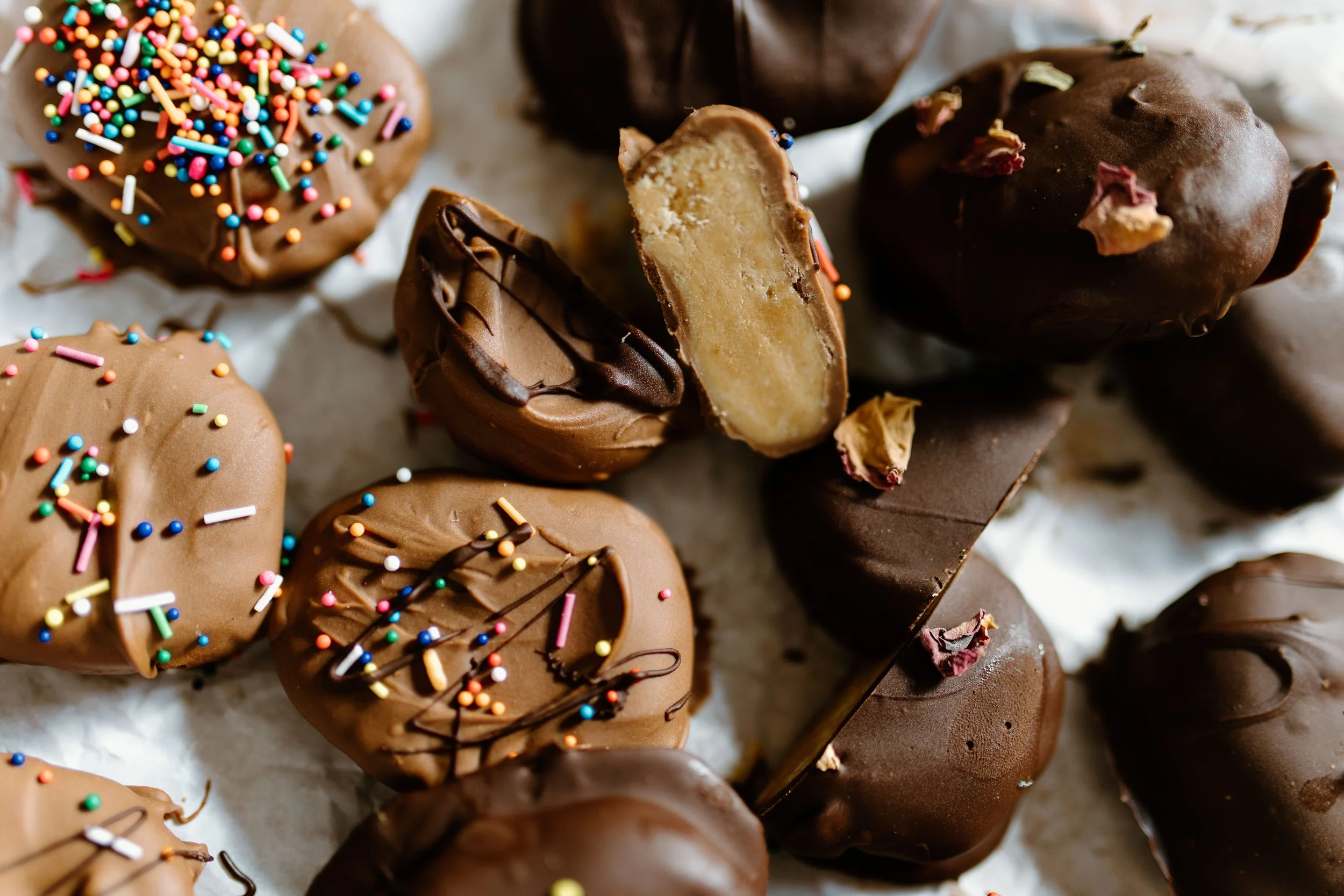 Dip each egg into the chocolate to coat and set back onto the parchment paper. Freeze for 10 more minutes.
