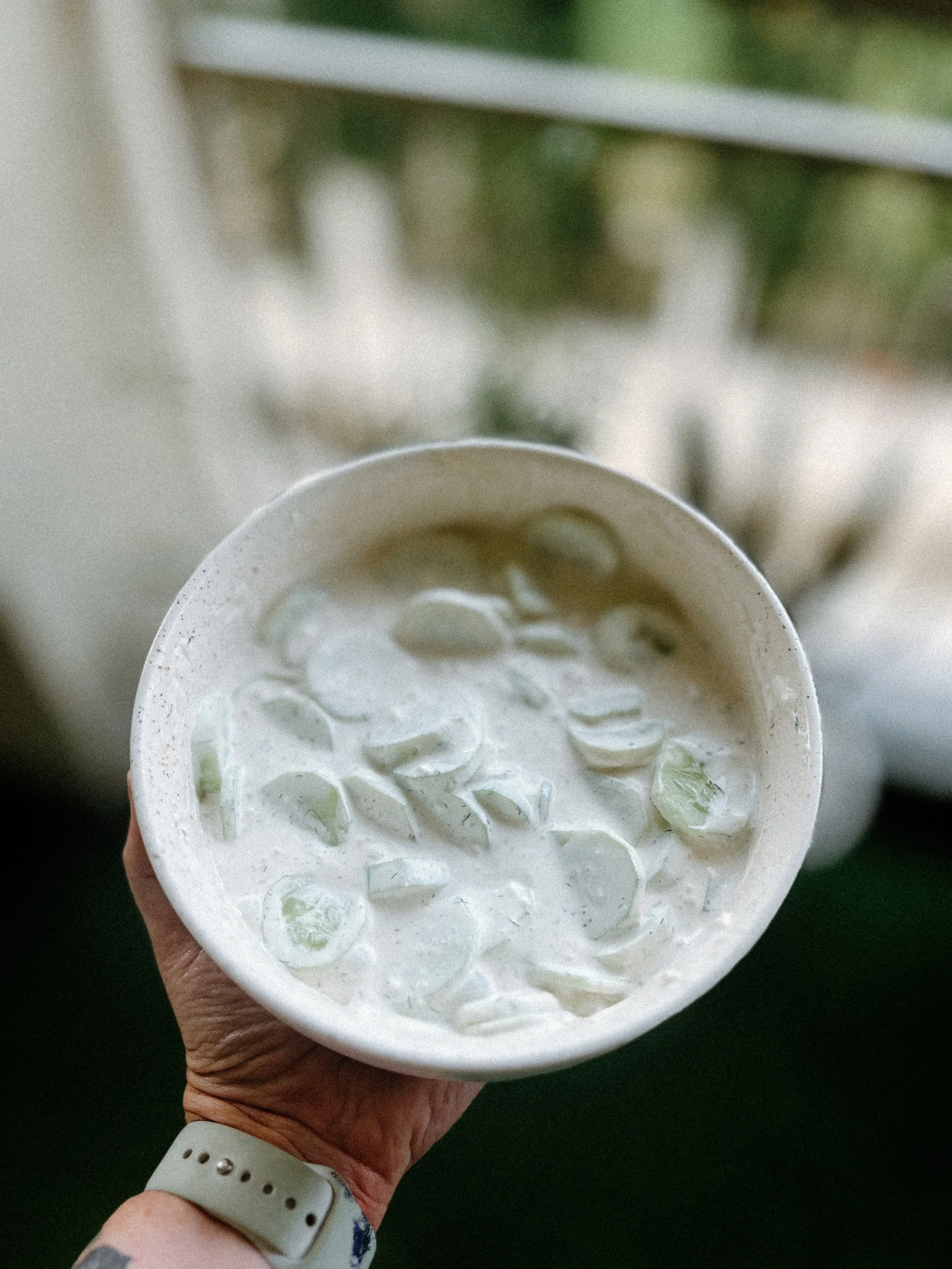 I remember eating this salad as a kid in the summers, especially with my parents’ garden growing! It’s so good — the longer it sits, the better it tastes. The cucumbers sort of pickle in the sauce, the sour cream, vinegar, and sugar create this super umami flavor that’s refreshing and delicious. The dill is optional — I’m fairly certain I grew up eating it without the dill added, but it definitely adds another layer of flavor that our family loves. We eat this whole creamy cucumber salad in one sitting, so don’t be afraid to double the recipe!